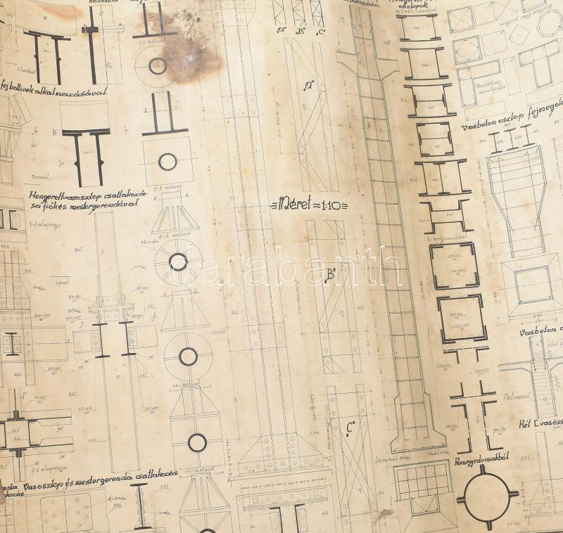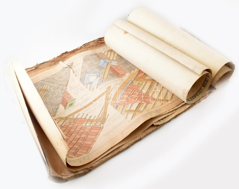 cca 1931-33 Építészeti diákrajzok, díszítőrajzok, házak részletei stb., vegyes technika, papír, részben sérült és foltos, össz 16 db, 58x42 és 90x125 cm közötti méretekben