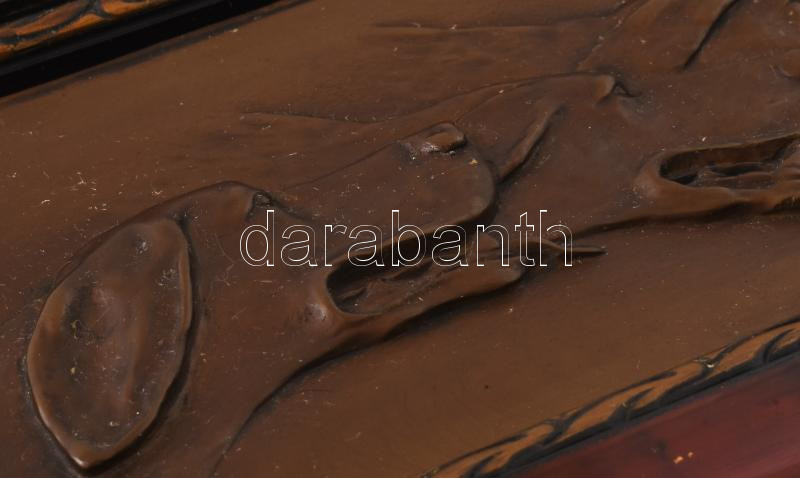 Vadászkutyák. Bronz plakett, sérült fa keretben, jelzés nélkül, 14x29 ...