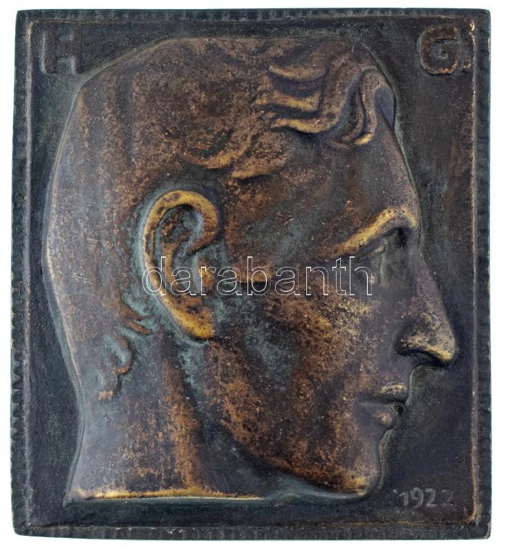 Szentesy Hiesz Géza (1896-1975) 1922. "Jobbra néző férfi portré" egyoldalas bronz plakett. Szig.: "HG" (103x114mm) C:XF