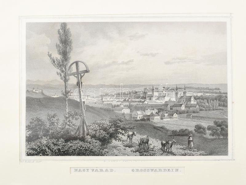 cca 1860 Ludwig Rohbock (1820-1883) - Georg Michael Kurz (1815-1883): Nagyvárad / Grosswardein (Oradea) erdélyi város látképe. Acélmetszet, papír, paszpartuban, hátoldalán tulajdonosi bélyegzővel, szárazbélyegzővel, 11,5x16,5 cm, teljes méret: 21,5x30,5 cm