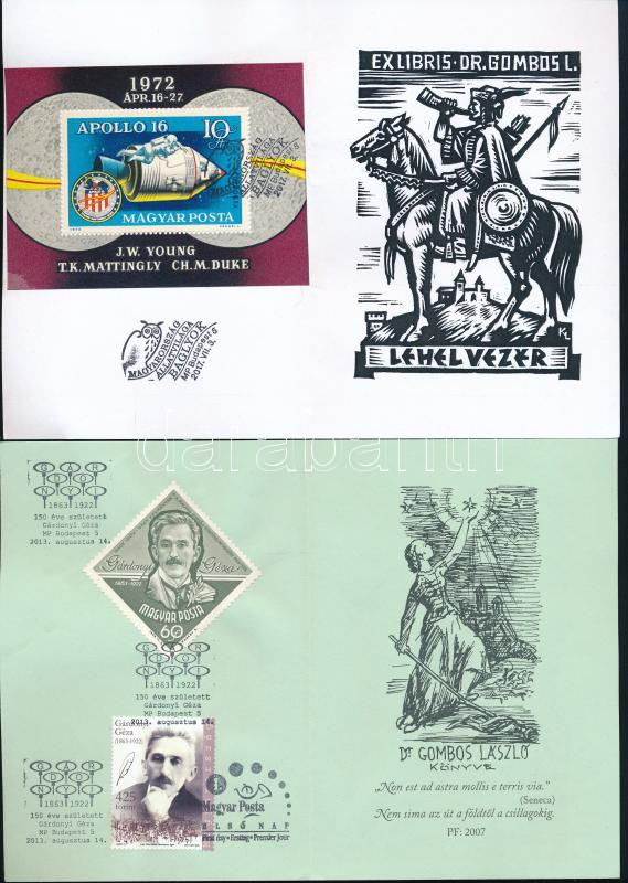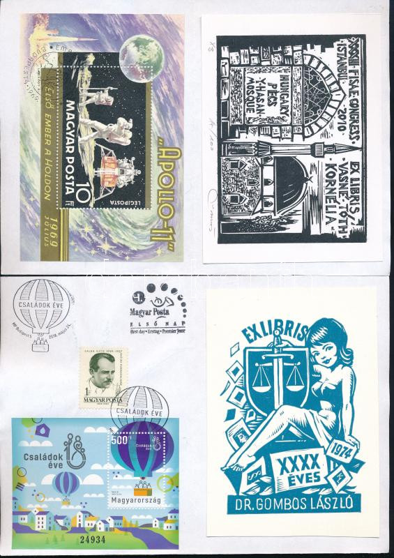 Fejlődés 6 db halmozott grafika: , bélyeg, alkalmi bélyegzés azonos témában ex librisekkel