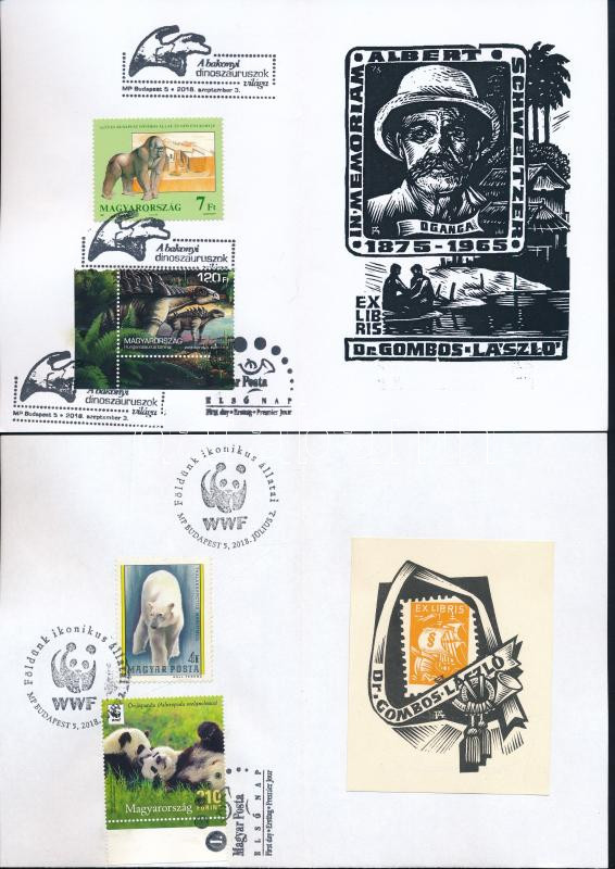 Földtani kincsek 6 db halmozott grafika: , bélyeg, alkalmi bélyegzés azonos témában ex librisekkel