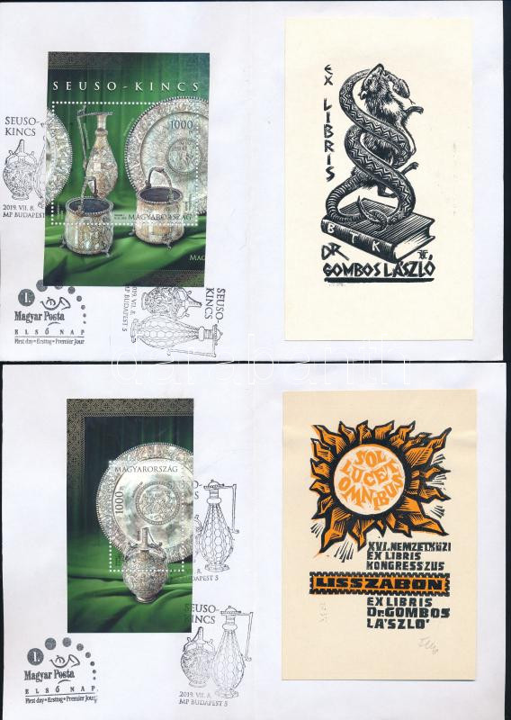 Műkincsek Seuso kincs 4 db halmozott grafika: ex libris, bélyeg, alkal...