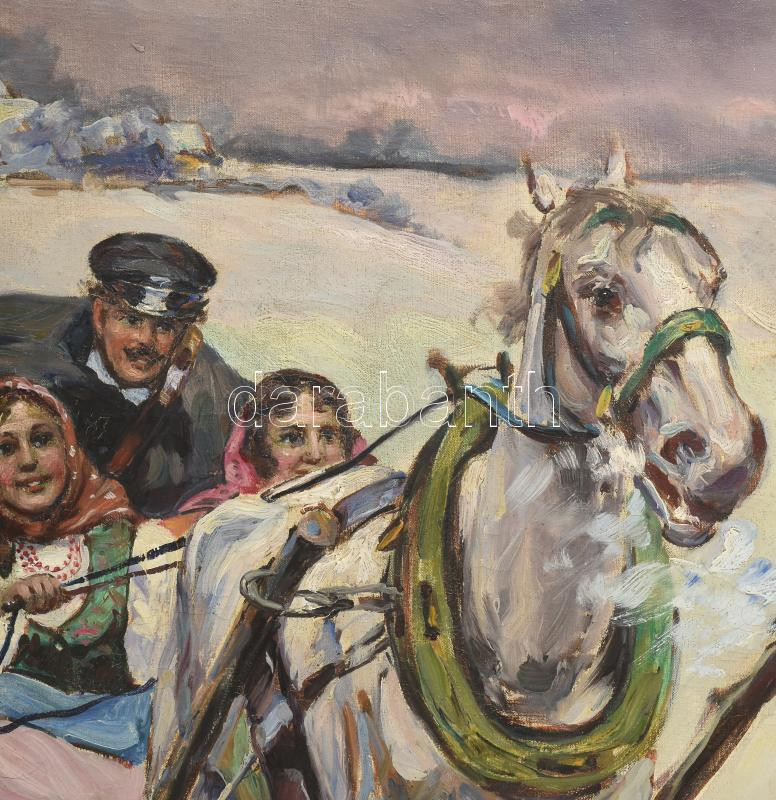 Nik Ivanoff jelzéssel: Téli kirándulás. Olaj, vászon. Dekoratív fakeretben. 80x60 cm