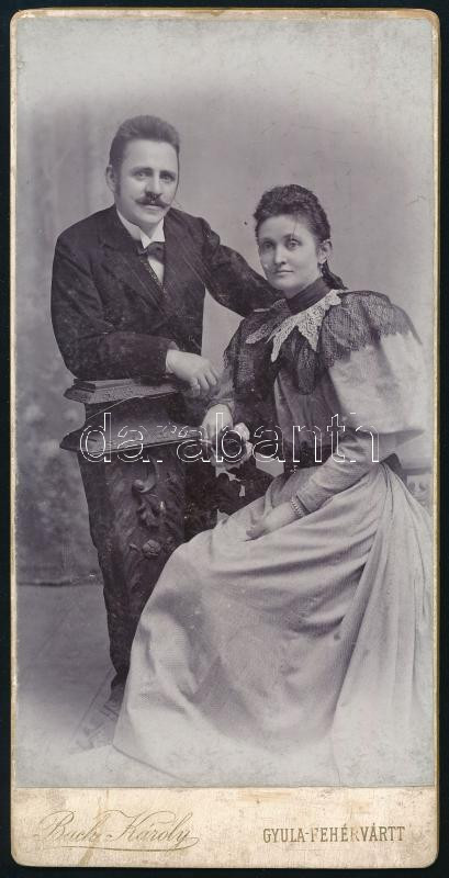 cca 1895 Házaspár portréja, keményhátú fotó Beck Károly gyulafehérvári...