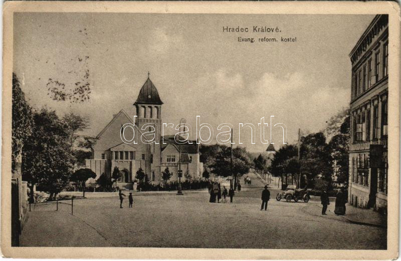 https://www.darabanth.com/en/460-Online-auction/460.0/Postcards/Czech-Republic~1500031/1915-Hradec-Kralove-Koniggratz-Evang-reform-kostel-Lutheran-church-street-view-with-autom~II3083884