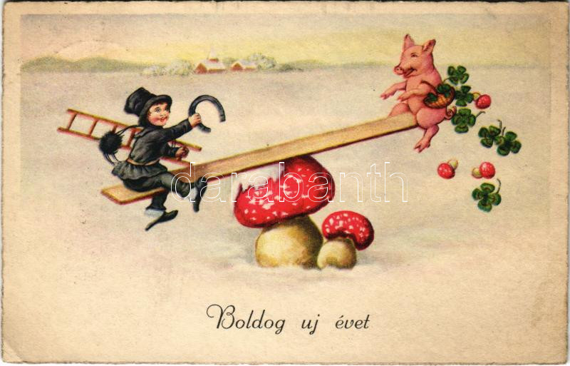 https://www.darabanth.com/en/460-Online-auction/460.0/Postcards/Greeting-Cards-Holidays~1500084/1937-Boldog-Ujevet-New-Year-greeting-art-postcard-with-chimney-sweeper-and-pig-on-a-seesaw-hors~II3079727