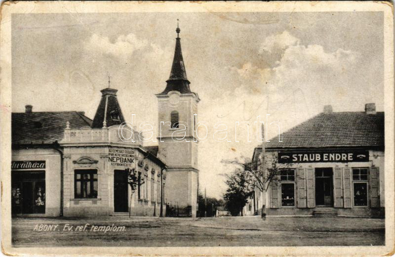 1930 Abony, Református templom, az Egyesült Ceglédi Ipar, Kereskedelmi... https://www.darabanth.com/en/460-Online-auction/460.0/Postcards/Hungary~1500005/1930-Abony-Reformatus-templom-az-Egyesult-Cegledi-Ipar-Kereskedelmi-es-Nepbank-R-T-fiokin~II3085964