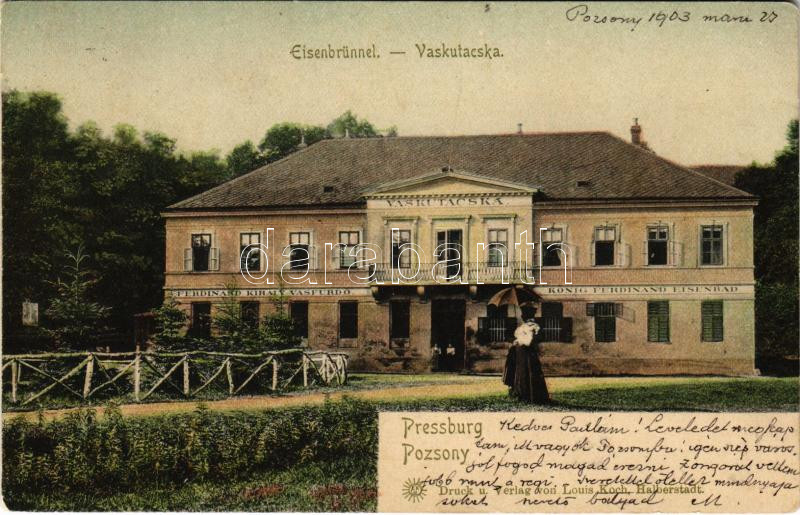 1903 Pozsony, Pressburg, Bratislava; Vaskutacska, Ferdinánd király vas... https://www.darabanth.com/en/460-Online-auction/460.0/Postcards/Slovakia~1500007/1903-Pozsony-Pressburg-Bratislava-Vaskutacska-Ferdinand-kiraly-vasfurdo-Louis-Koch-kiadasa-~II3084380