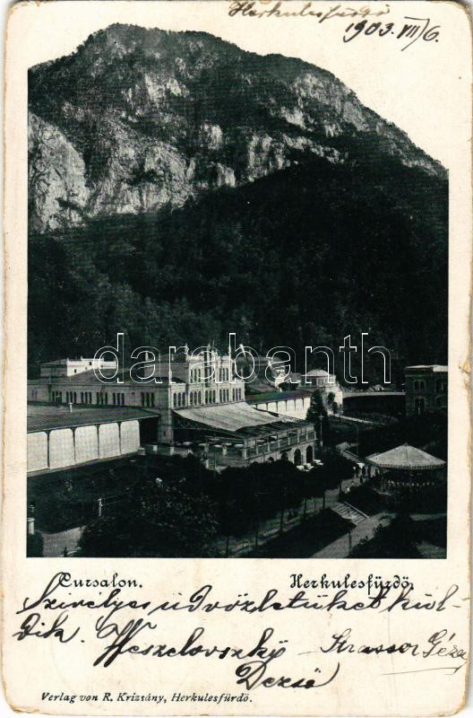 https://www.darabanth.com/en/460-Online-auction/460.0/Postcards/Transylvania~1500006/1903-Herkulesfurdo-Baile-Herculane-Cursalon-gyogyterem-R-Krizsany-kiadasa-spa-EM~II3080447