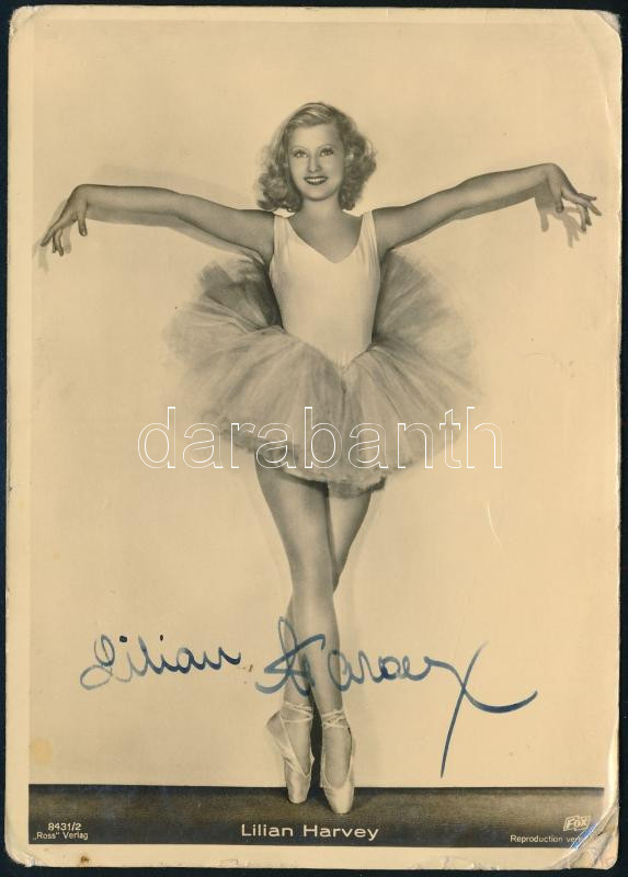 cca 1930 Lilian Harvey (1906-1968) színésznő autográf aláírása őt ábrá... https://www.darabanth.com/en/461-Online-auction/461.0/Art-and-other-collectibles/Autographs~1500022/cca-1930-Lilian-Harvey-1906-1968-szineszno-autograf-alairasa-ot-abrazolo-fotolapon-sarka-kisse~II3090608