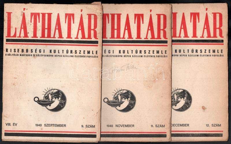 1940 Láthatár. Kisebbségi kultúrszemle. Külföldi magyarok és középeuró... https://www.darabanth.com/en/461-Online-auction/461.0/Art-and-other-collectibles/Printed-Materials~2000015/1940-Lathatar-Kisebbsegi-kulturszemle-Kulfoldi-magyarok-es-kozepeuropai-nepek-szellemi-eletenek~II3091928
