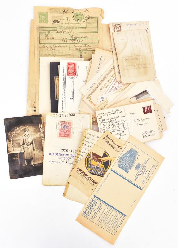 Vegyes papírrégiség tétel. Reklámok, nyomtatványok, egy két számolócéd...