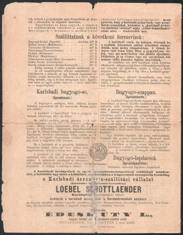 cca 1880-1890 Rövid értesítés a karlsbadi meleg gyógyforrásokról. Karl... https://www.darabanth.com/en/461-Online-auction/461.0/Art-and-other-collectibles/Printed-Materials~2000015/cca-1880-1890-Rovid-ertesites-a-karlsbadi-meleg-gyogyforrasokrol-Karlsbadi-asvanyviz-szallitasi~II3094910