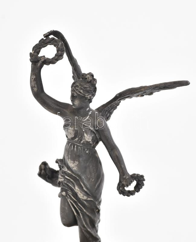 Niké, Empire szobor. Ón szobor, aranyozott bronz talapzaton, márvány alapon. 27 cm