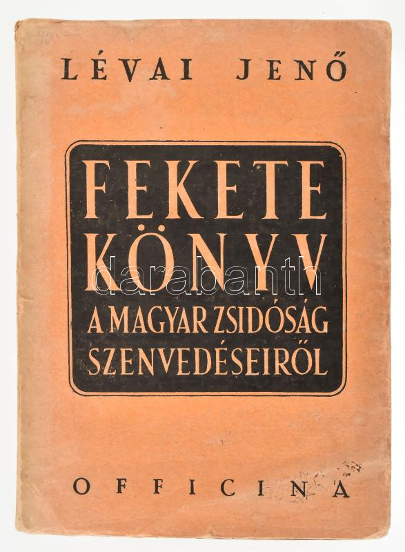 Lévai Jenő: Fekete könyv a magyar zsidóság szenvedéseiről. Bp., 1946, ... https://www.darabanth.com/en/461-Online-auction/461.0/Books/Books-Judaica~2000046/Levai-Jeno-Fekete-konyv-a-magyar-zsidosag-szenvedeseirol-Bp-1946-Officina-319plus1-p-Elso~II3097526