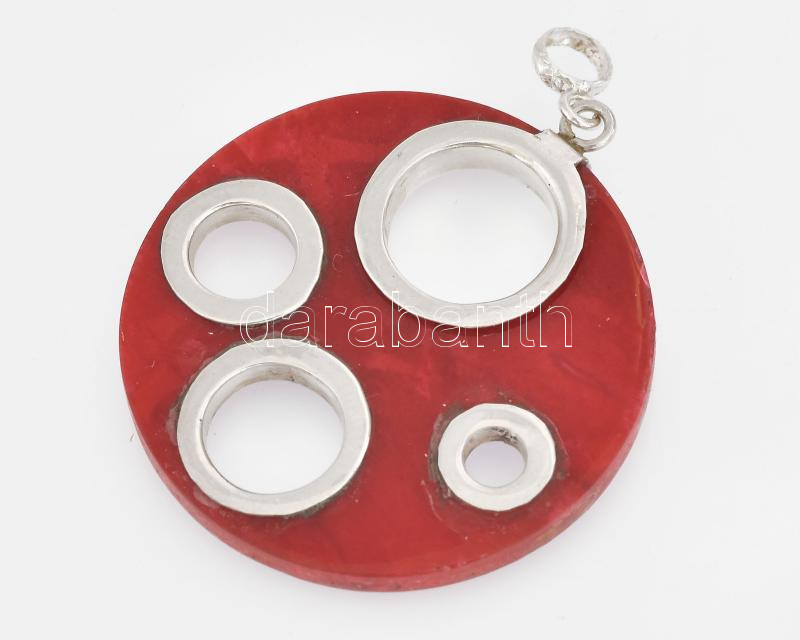 Ezüst(Ag) medál korallal, jelzett, d: 3 cm, bruttó: 2,99 g