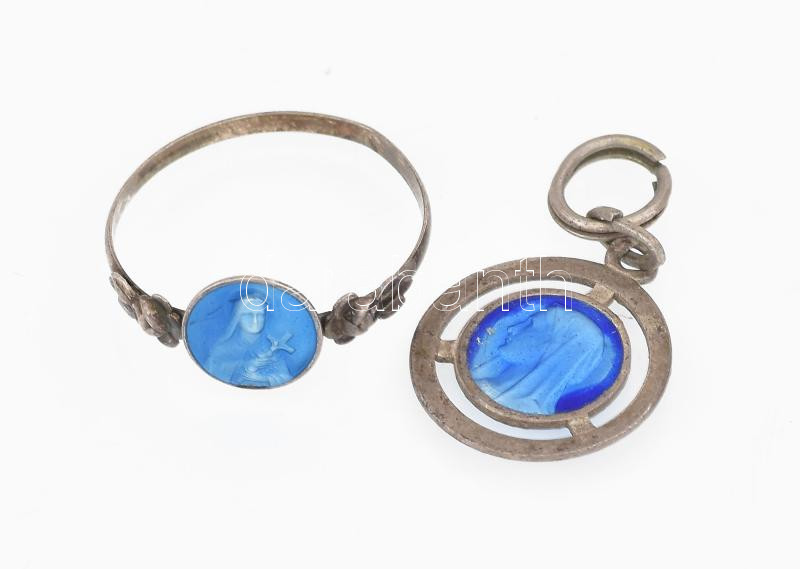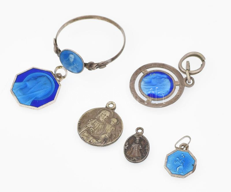 Ezüst(Ag) vegyes ékszer tétel, medálok, gyűrű, jelzés nélkül, bruttó: 5,05 g