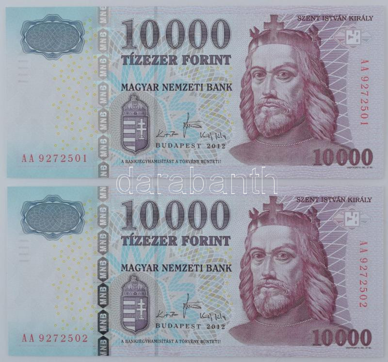 https://www.darabanth.com/en/461-Online-auction/461.0/Numismatics/Hungarian-Banknotes~500009/2012-10000Ft-2x-sorszamkovetok-AA-9272501-AA-9272502-T-UNC~II3075138