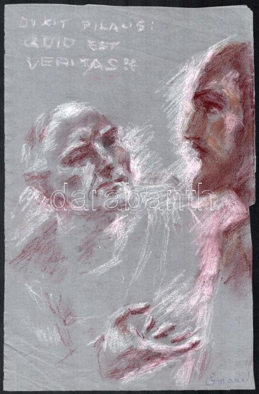 Description: Emanuel Béla (1879-1976): Dixit Pilatus: Quid est veritas. Pasztell, papír, jelezve jobbra lent. Proveniencia: a művész hagyatéka. Lap széle vágott. 37,5×24,5 cm.