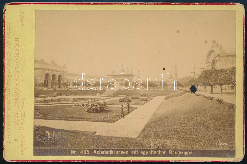 1873 Bécs, világkiállítás, egyiptomi pavilon, keményhátú fotó, foltos,...