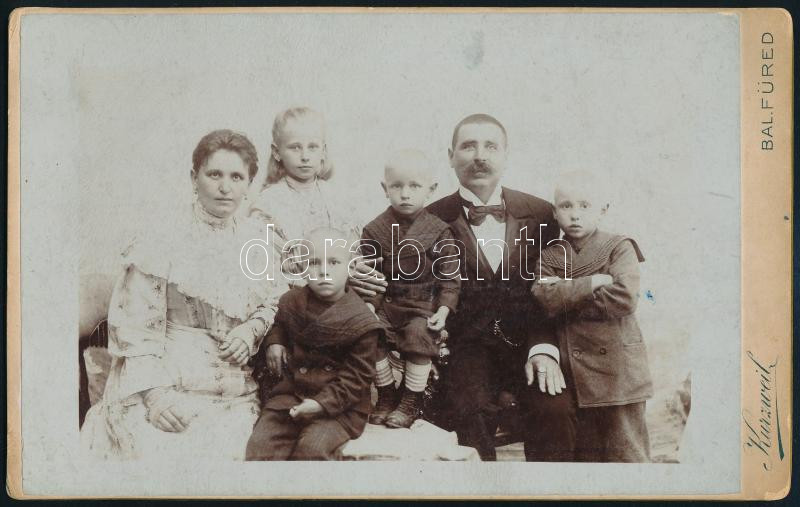 cca 1905 Herceg család portréja, keményhátú fotó Kurzweil balatonfüred...