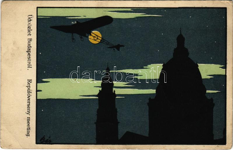Budapest, Repülőverseny meeting. Sziluettes művészlap / Aircraft meeting, silhouette art postcard s: Bér (EB)