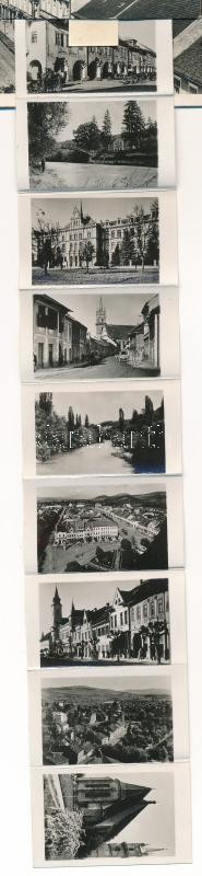 Description: Beszterce, Bistritz, Bistrita; Fő utca, Rozenfeld Áron és Wellmann üzlete, Transsylvania szálloda. Leporellolap belül 10 képpel / main street, shops, hotel. leporellocard with 10 pictures