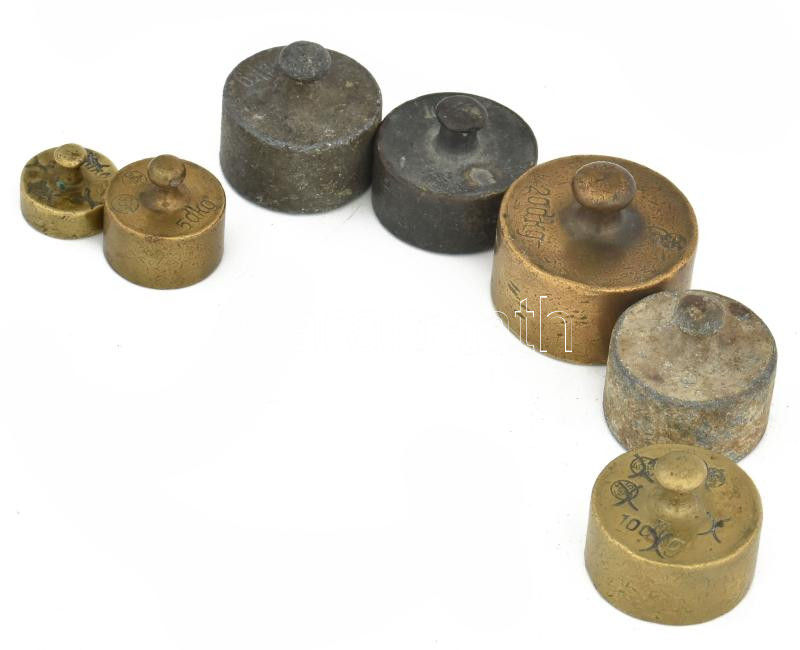 7 darab antik mérlegsúly. Bronz, vas, hitelesítésekkel.
