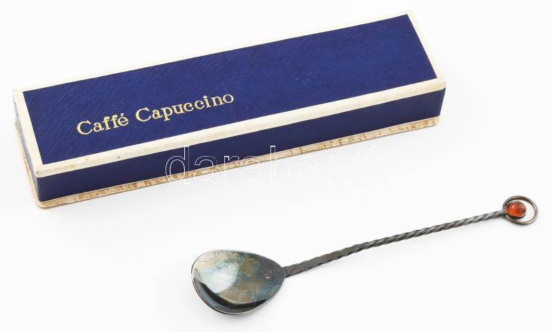 Ezüstözött kávés/cappuccinos kanál, jelzett, díszdobozban, h: 15,5 cm