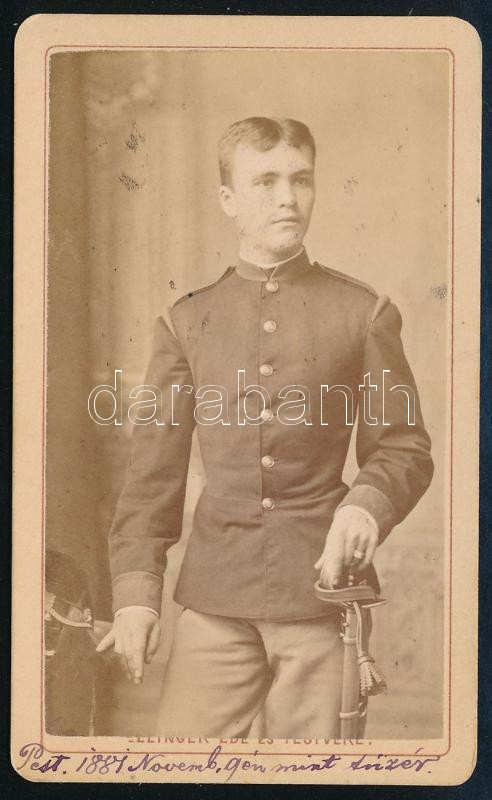 1881 Pest, Péchy Imre tüzér portréja, keményhátú fotó Ellinger Ede és ...