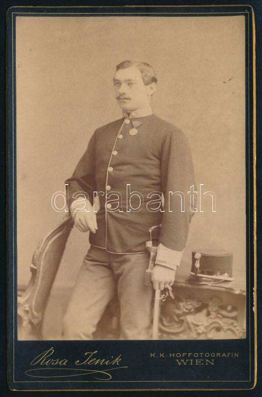 https://www.darabanth.com/en/462-Online-auction/462.0/Art-and-other-collectibles/Military~2000009/1884-Kituntetett-katona-alairt-fotoja-kemenyhatu-kabinetfoto-Rosa-Jenik-becsi-mutermebol-17x11-cm~II3104815
