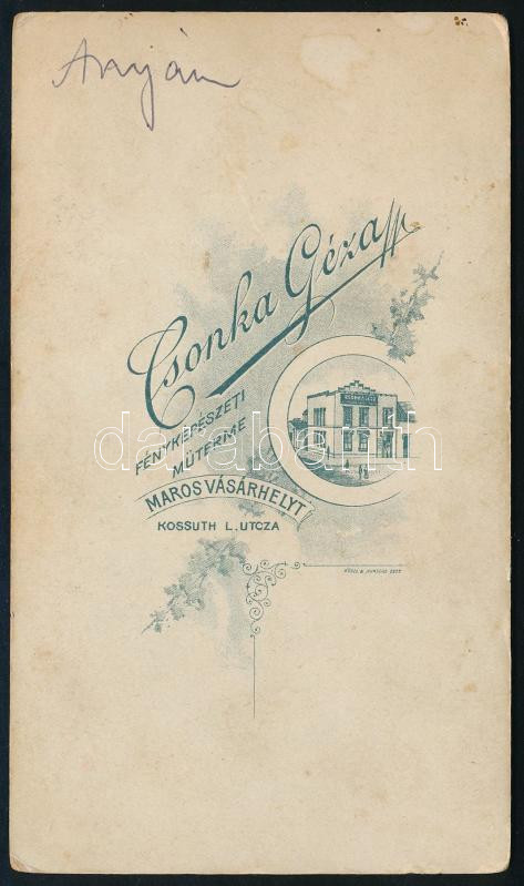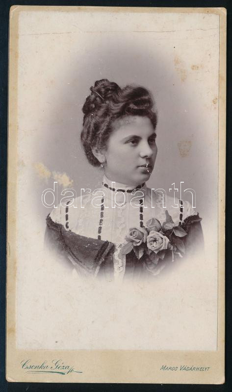 cca 1900 Női portré, keményhátú fotó Csonka Géza marosvásárhelyi műter...