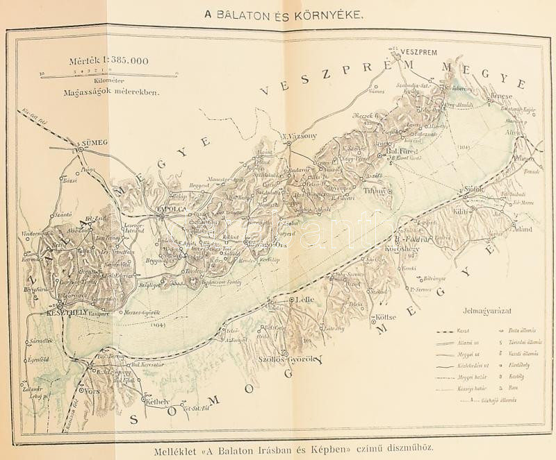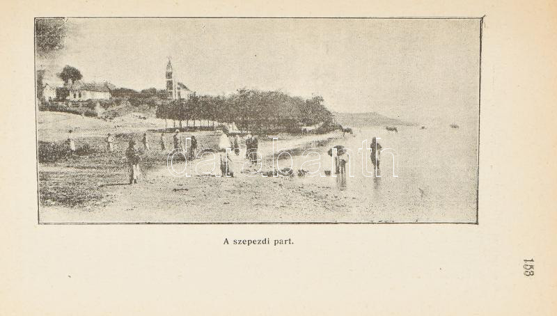 Sági János: A Balaton írásban és képben. A magyar tengernek és vidékének lírása. A balatoni fürdő- és nyaralóhelyek elfogulatlan és kimerítő ismertetése. Keszthely, 1902., "Keszthelyi Hírlap",(Nagykanizsa, Fischel Fülöp),346+12 p. + 2 (kihajtható táblázat, kihajtható térkép) t. Fekete-fehér szövegközti és egészoldalas képekkel illusztrált. Átkötött papírkötés, az eredeti borító elülső részét a borítóra kasírozták, az elején 4 lap kijár (5-12 p.), néhány felvágatlan lappal.