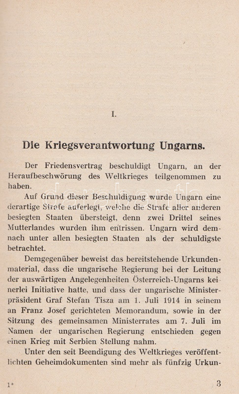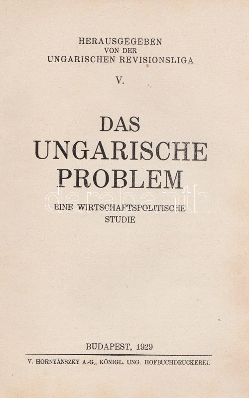 Budapest, 1929. Ungarischen Revisionsliga (V. Hornyánszky Hofbuchdruckerei A.-G.) 1 t. (címképen a trianoni döntés térképe) + 57 + [9] p.