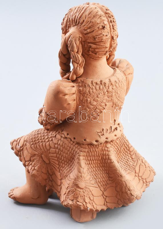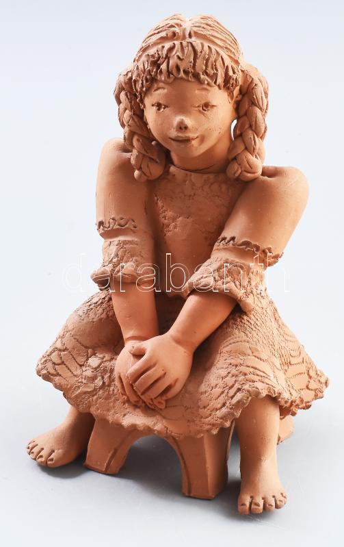 Illár Erzsébet (1940-): Ülő lányka terrakotta szobor, jelzett m: 18 cm