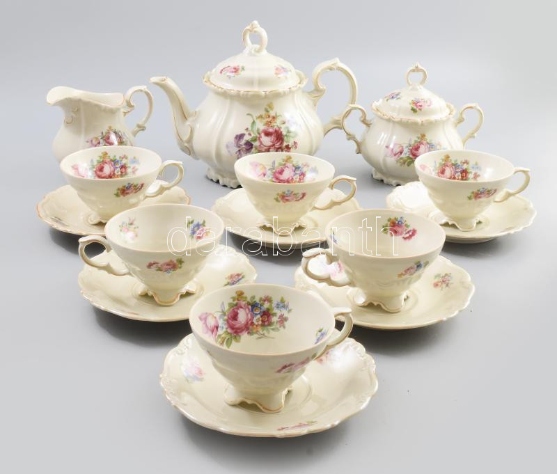 Edelstein Bavaria Maria Theresia porcelán teás készlet hat személyes, Matricás, jelzett, egyik csészén kis lepattanás