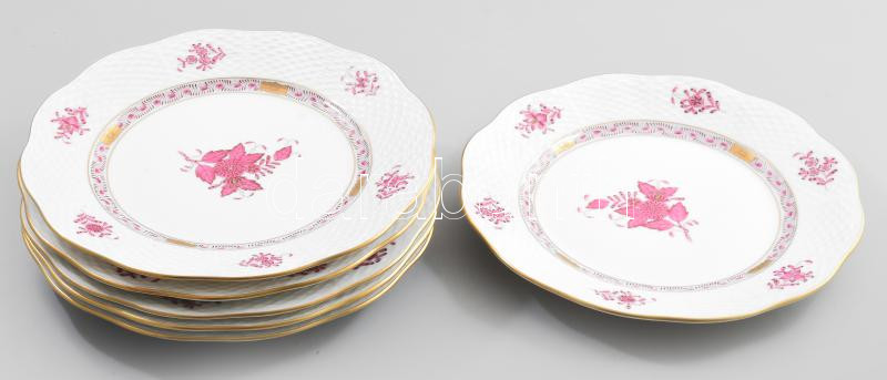 Herend Apponyi purpur mintás 6 darab süteményes tányér. Jelzett, kézzel festett, hibátlan, d: 20,5 cm