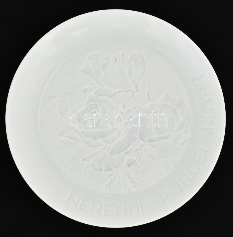 Herendi Porcelángyár litofán emléktányér, fehér mázas/biszkvit, jelzet...
