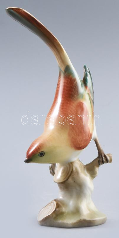 Herendi madár. Kézzel festett, jelzett, csőrén lepattanással. 14 cm