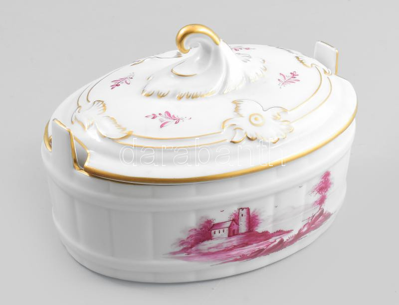 Hochst porcelán bonbonniere. Kézzel festett, jelzett, hibátlan 15x14 cm