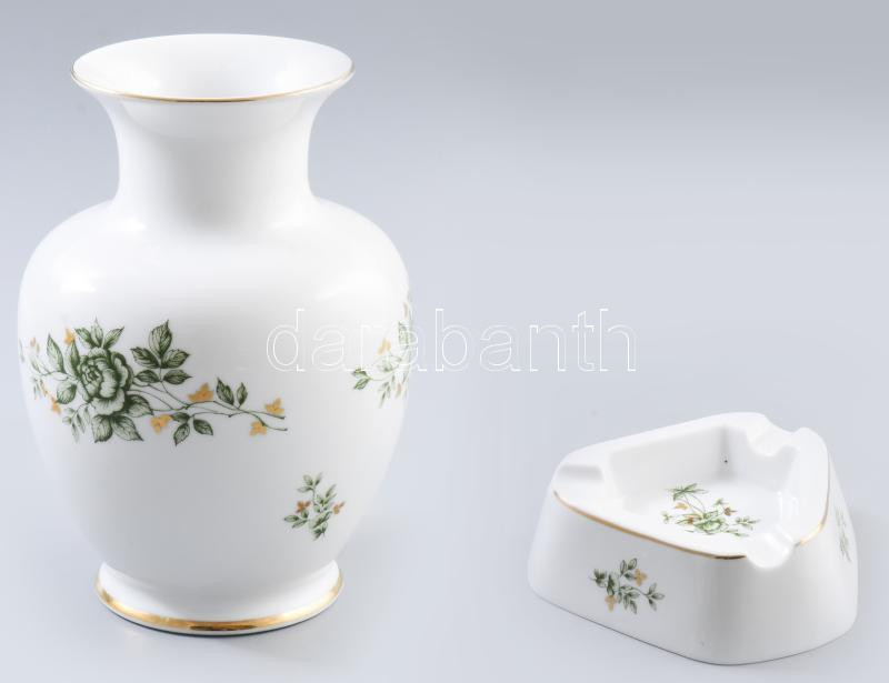Hollóházi Erika mintás váza és hamuzó. Jelzett, hibátlan, m: 17,5 cm, ...