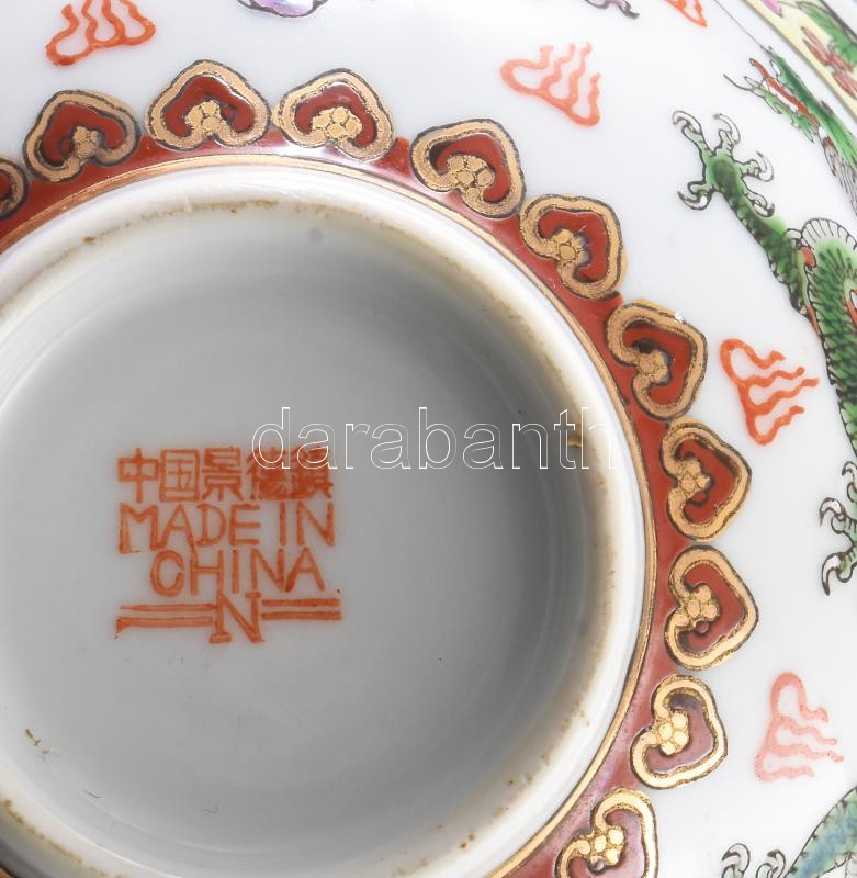 Sárkánymintás kínai leveses tál kanállal. Jelzett, hibátlan, d: 13 cm,...