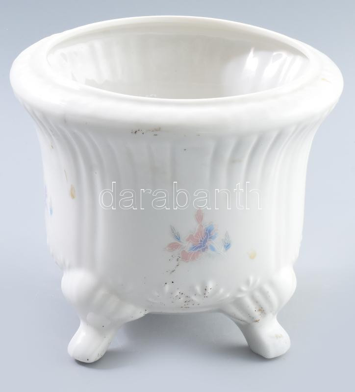 Virágmintás kaspó. Jelzett, kis kopással, d: 18 cm, m: 16 cm