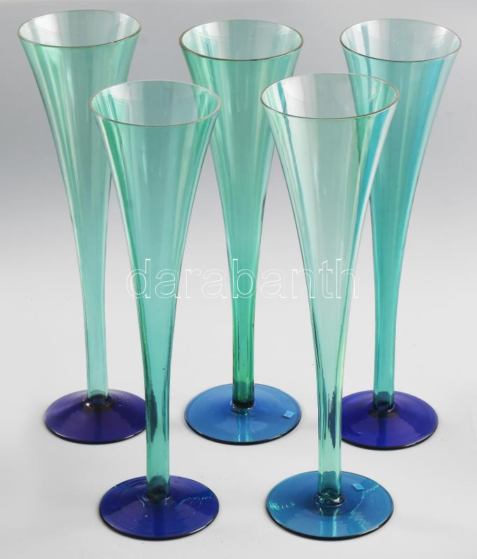 5 darab anyagában színezett design pezsgős flőtepohár, 2 klf, jelzés nélkül, hibátlan, m: 27 cm
