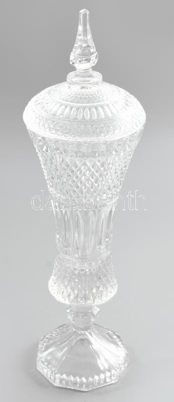 Kristály fedeles serlegváza. Jelzés nélkül, hibátlan, m: 36 cm