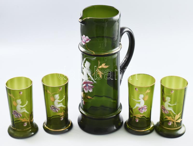https://www.darabanth.com/en/462-Online-auction/462.0/Porcelain-ceramics-glassware/Glass-objects~500007/Vizes-kancso-negy-poharral-Kezzel-keszitett-huta-uveg-kezzel-festve-puttos-mintaval-30-cm~II3109011