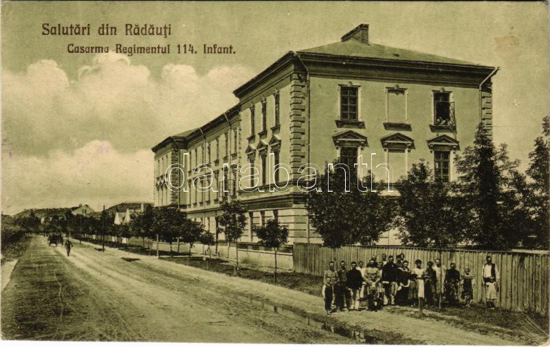 https://www.darabanth.com/en/462-Online-auction/462.0/Postcards/Romania~1000042/1927-Radauti-Radoc-Radautz-Bukovina-Bucovina-Bukowina-Casarma-Regimentul-114-Infant-~II3107724