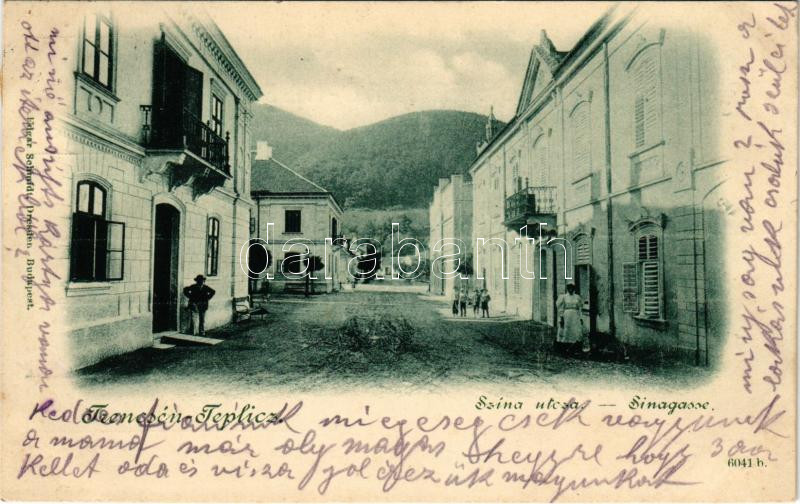 1900 Trencsénteplic, Trencianske Teplice; Sina utca, a Sina és Háromsz...