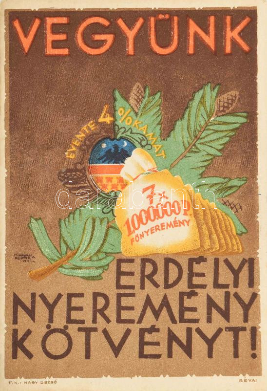 1941 "Vegyünk erdélyi nyereménykötvényt!" reklámcédula, jelzett a dúco...